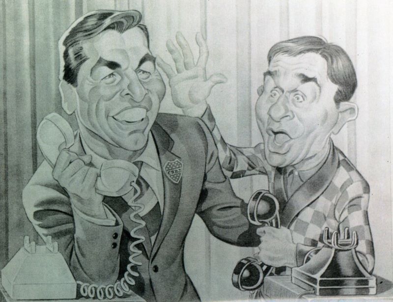 Caricatura de Jorge de Los Ríos: Pepe Biondi con Antonio Roma arquero de Boca
