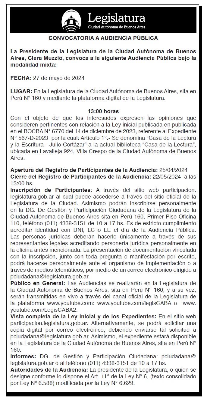 AUDIENCIAConvocatoria a Audiencia Pública del 27-05-2024 13.00 HS by Francisco Grillo16 abril, 202416 abril, 20240167 Share1