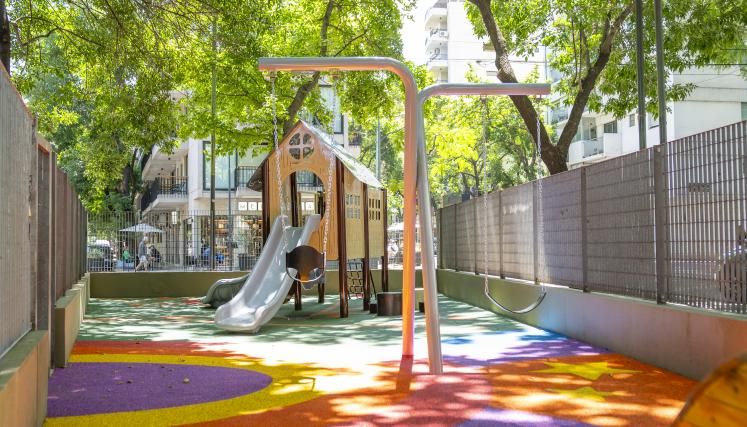Ahora se ha potenciado la oferta con la presencia de los nuevos juegos incorporados. Los que, de acuerdo a las nuevas tendencias, incentivan la interacción entre los chicos y se orientan hacia el proceso de socialización. En un espacio al aire libre y sustentable. Sobresalen, entre el nuevo equipamiento incorporado, por un lado, el mangrullo central y las otras opciones como, la nube de escalación, el pórtico de hamacas y pizarrones.